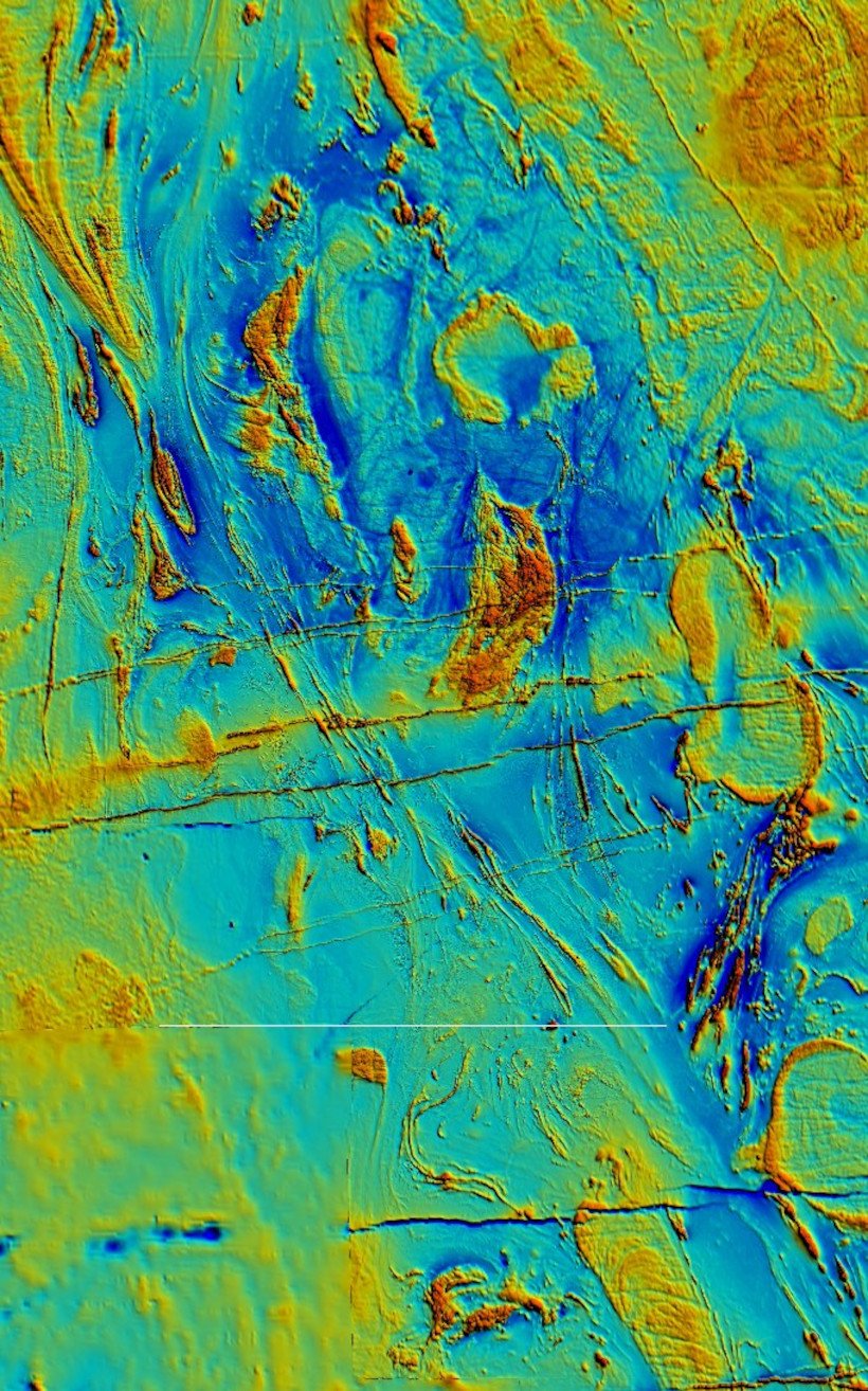 - Interpretación integrada de estructuras geológicas, lineamientos, cuerpos intrusivos, zonas de alteración y litologías basada en la combinación de múltiples propiedades físicas.